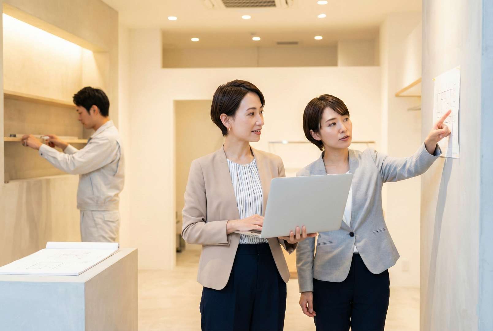デザイナーが描いた図面を元に、実際に店舗を完成させるための「司令塔」です。予算管理、スケジュール調整、資材の発注、職人の手配、現場での品質・安全管理などを行います。