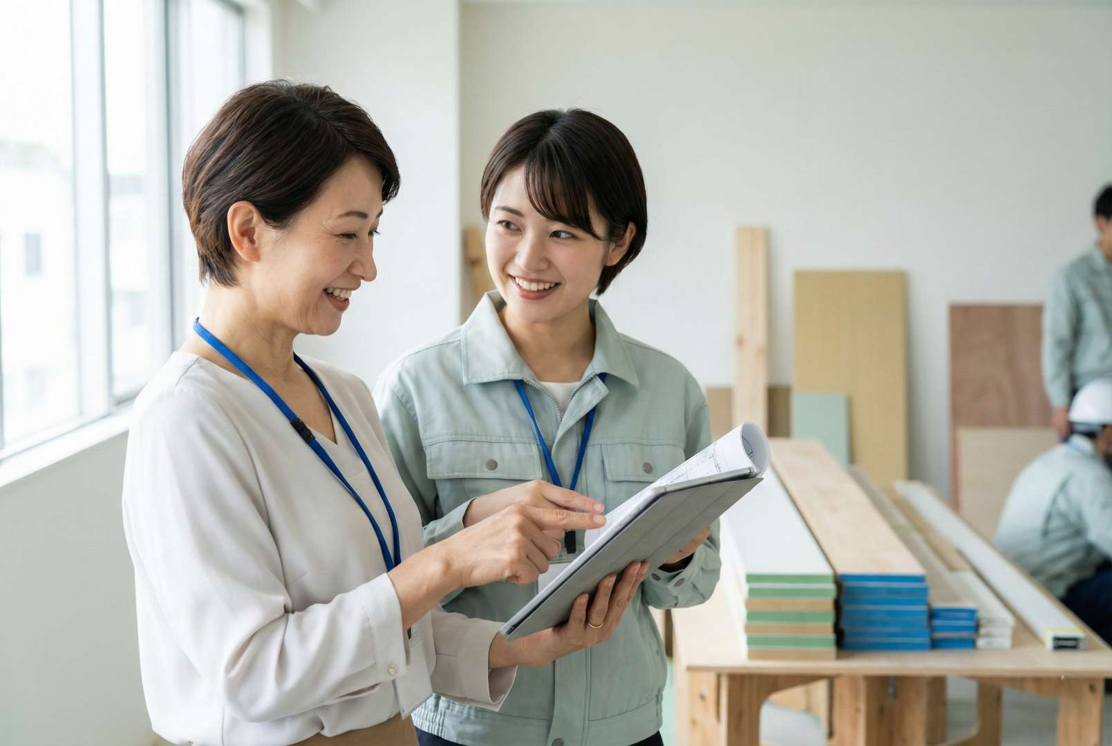施工管理者の仕事は「管理」が中心です。重い資材を運ぶのは職人さんの仕事なので、体力的な負担は比較的少なめです。